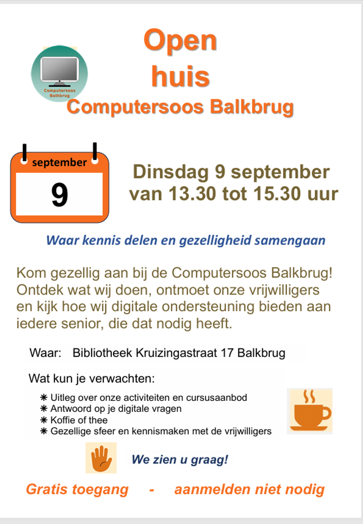 Wij nodigen u van harte uit voor het Open Huis van de Computersoos Balkbrug!